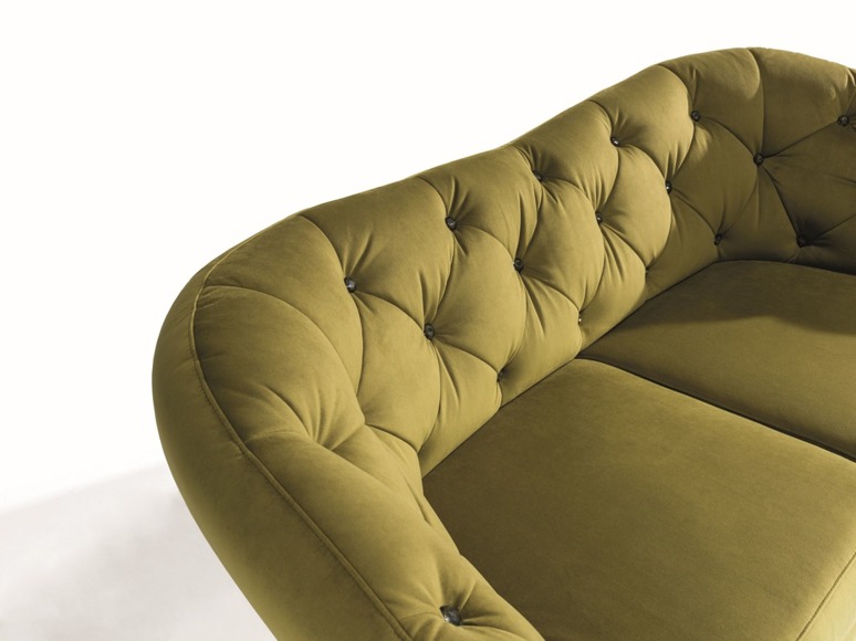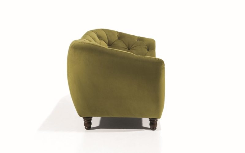 Viktoriánus jellegű két-, vagy háromszemélyes kanapé, ívelt formákkal. Magas lábai kétféle változatban, míg kárpitozása a paletta minden árnyalatában rendelhető, valódi bőr borítással is. Tűzött támlája és rugalmas ülőfelülete gondoskodik a róla, hogy a pihenés vagy, kávézás melletti beszélgetések maximális kényelemben történjenek. Valódi ékköve lehet egy hagyományos stílusú nappalinak, de megfelelő díszpárnákkal, szövettel és lábakkal minden környezetbe beilleszthető.
