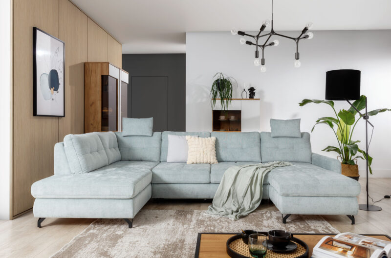 NAWE U-alakú 205 x 322 x 186 cm-es sarokgarnitúra állítható mélységű háttámlákkal. Jobbos- és balos állásban, többféle kárpittal-, a szivárvány minden színében rendelhető, kényelmes, rugós ülőfelületű U-alakú sarokgarnitúra. Ágynak nyitható, dupla ágyneműtartós sarokgarnitúra, mely igazi ékessége lesz nappalijának. Igény szerint áthelyezhető fejtámlák is rendelhetőek hozzá.