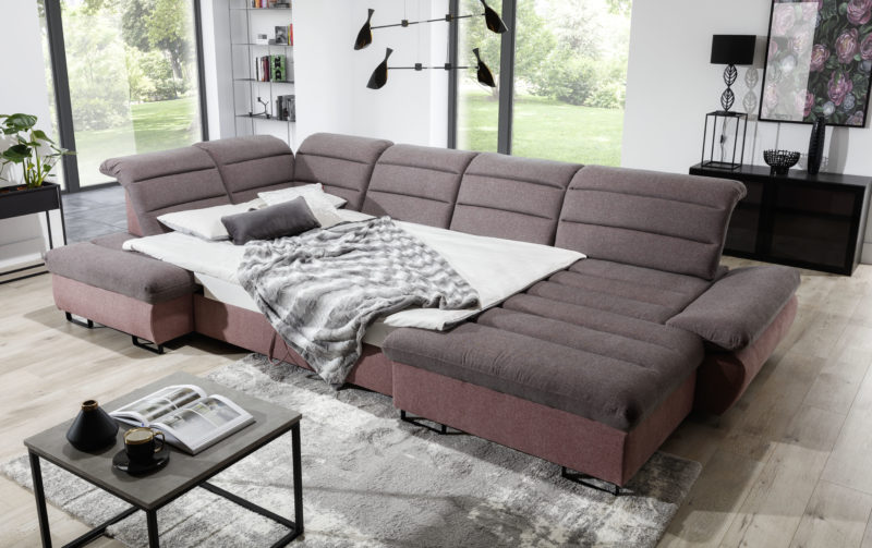ROMA U-alakú sarokgarnitúra állítható mélységű háttámlákkal és kartámlával,beépített fejtámlákkal. Ágynak nyitható és két ágyneműtartós kivitelben. Kényelmes rugós és szivacsos ülőfelülete és a mozgatható elemei tökéletes ellazulást ígérnek egy fáradt nap után. Jobbos és balos állásban, MINDEN színben és sokféle anyaggal, akár VALÓDI BŐR kárpittal is rendelhető sarokkanapé.